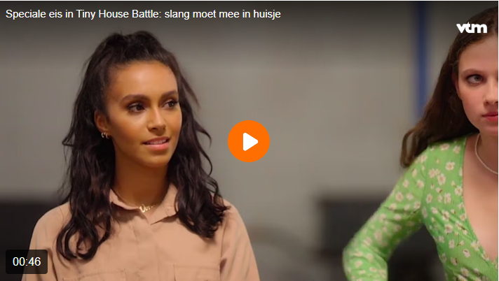 In Tiny House Battle bouwen twee teams op 17 januari een nieuwe thuis voor Ingrid (uit Adegem) en haar twee tienerdochters. Na een moeilijke periode wil Ingrid een frisse start maken in een eigen, tiny house. “We willen een keuken met een verplaatsbaar eiland, één kamer beneden, een bovenverdieping met twee slaapkamers waar je recht kan lopen en een badkamer met een bad”, klinkt het. De bouwteams vragen zich meteen af of al deze grootse wensen wel in een klein huisje passen. Bovendien hebben de dochters van Ingrid nog een heel speciaal, extra verzoek voor de bouwteams. “We krijgen binnenkort een slang als huisdier en die moet ook een plek krijgen in ons tiny house”, klinkt het.